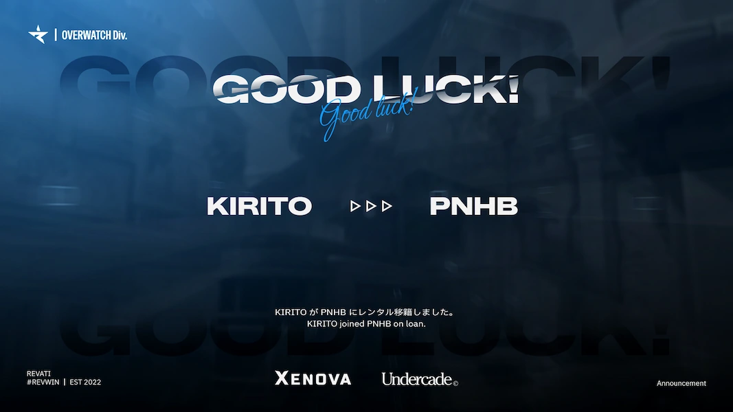 この度、REVATI Overwatch部門所属Kiritoが、通訳としてPNHBへレンタル移籍することが決定いたしました。